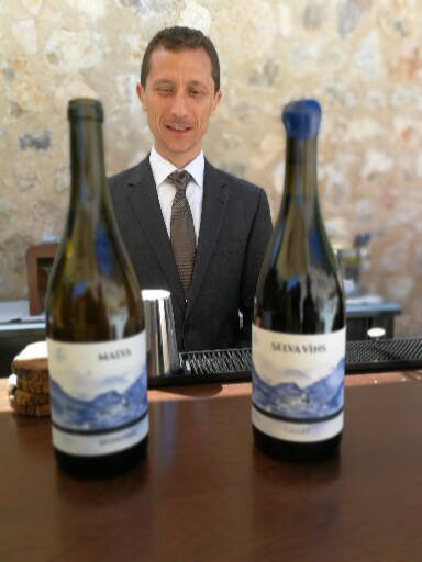 Wines from Selva Vins April 24, 2018 384 × 512 Olivera’s maitre d’ Roberto Gottelli at the new outdoor Olivera bar with two of the new wines from Selva Vins