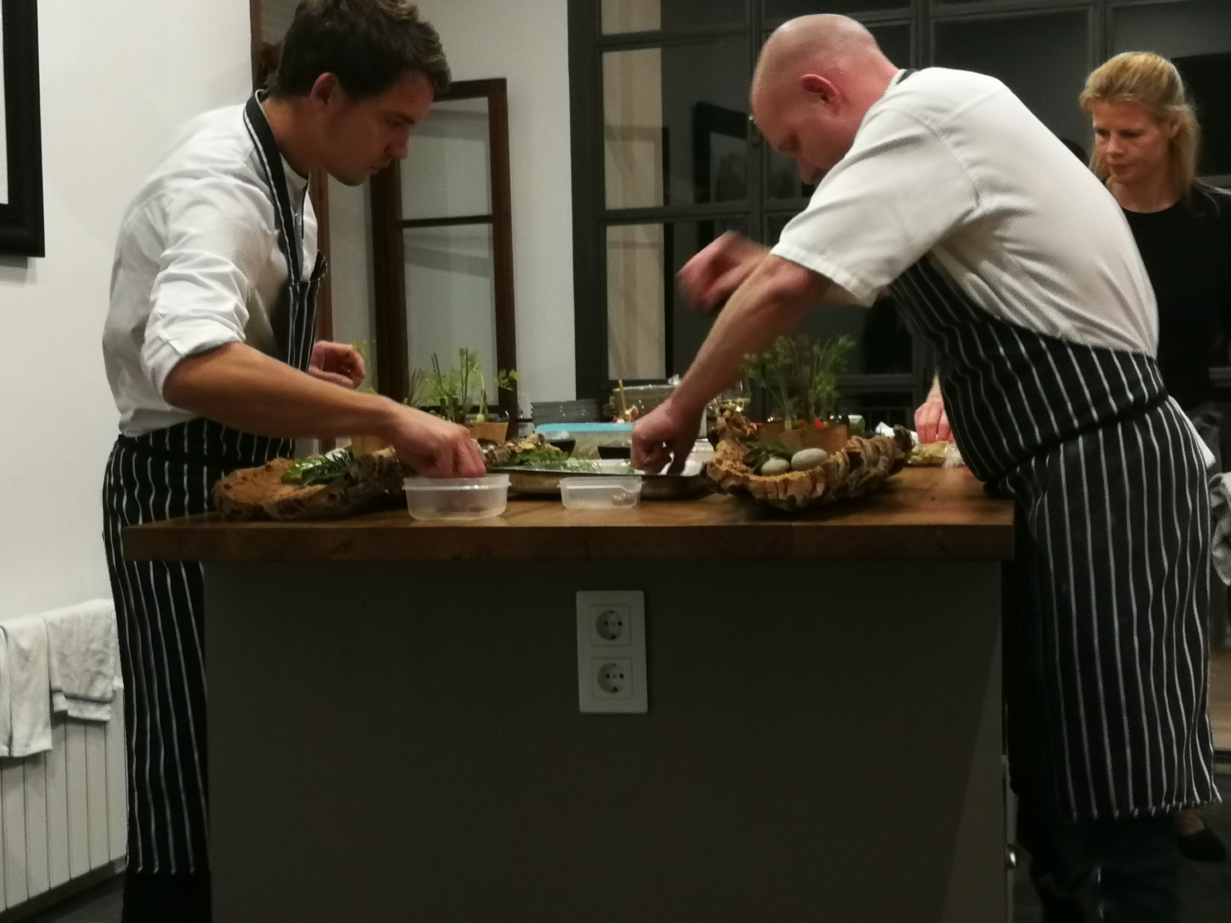 Chefs in the showkitchen April 20, 2019 3968 × 2976 Piers Dawson (right) and his sous chef Max Campbell putting finishing touches to dishes. Holly is pictured in the background
