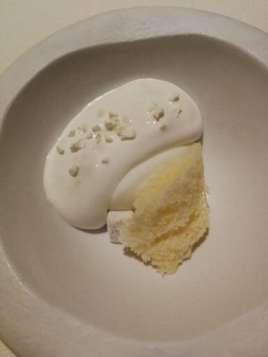 Dessert at Cova Negra, Capdepera August 6, 2019 384 × 512 Yogurt ice cream, sponge, kefir foam and yuzu gel