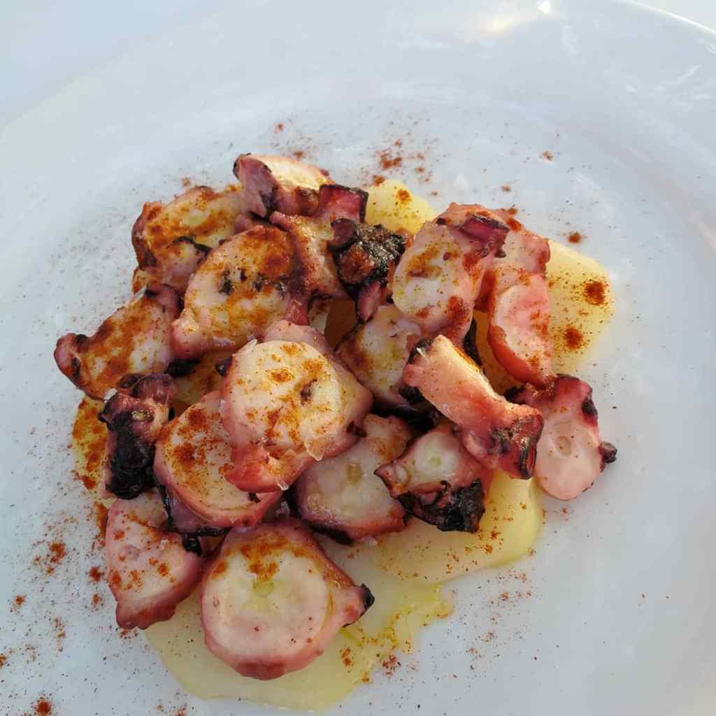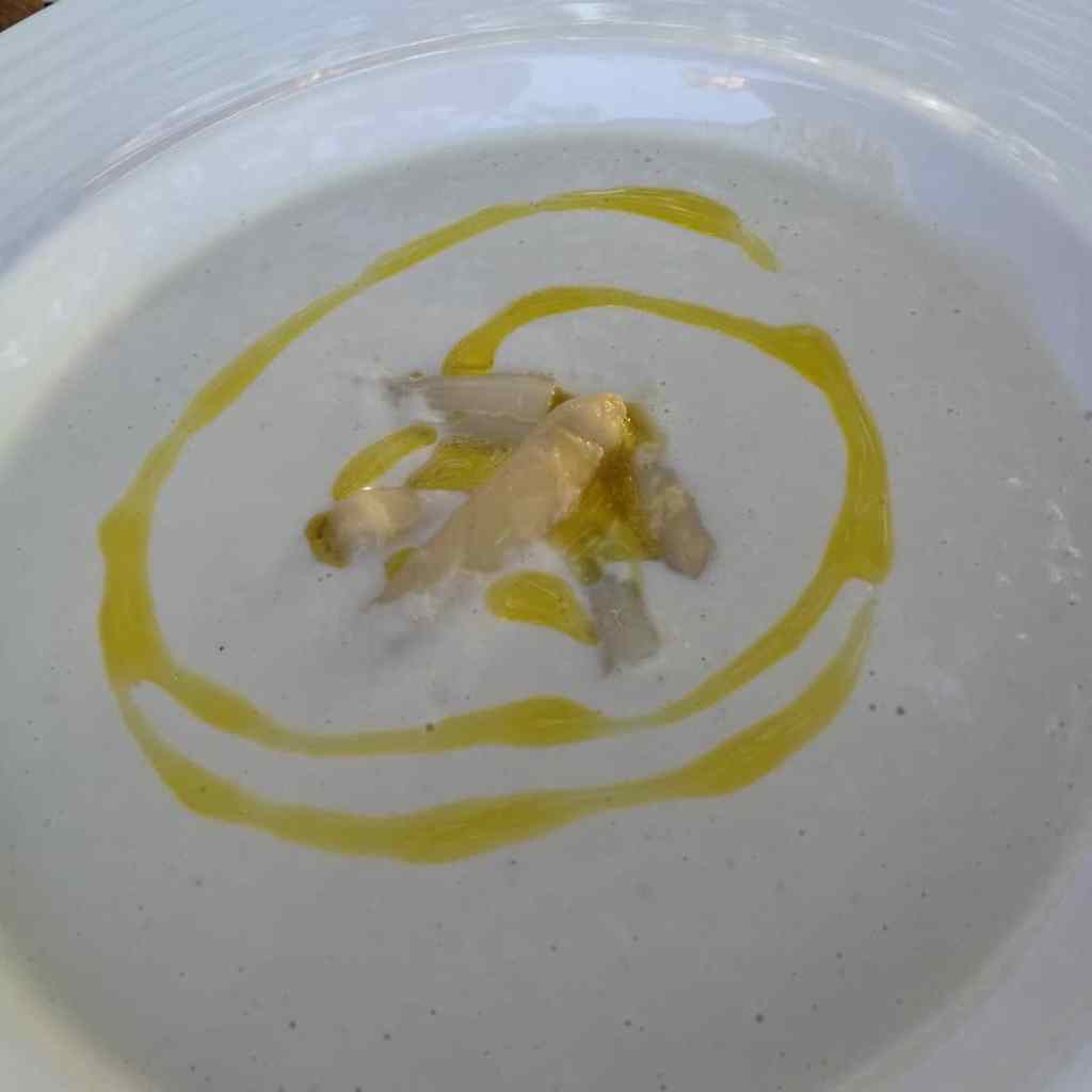 On the night we were there, the starters were chilled white asparagus soup or pulpo a la gallega (Galician-style octopus). Main courses were grilled salmon on a bed of potato purée or chicken breast stuffed with prawns and red pepper with new potatoes. Son Mas Rural Hotel served us warm bread rolls with aioli and green olives at the start of our dinner.