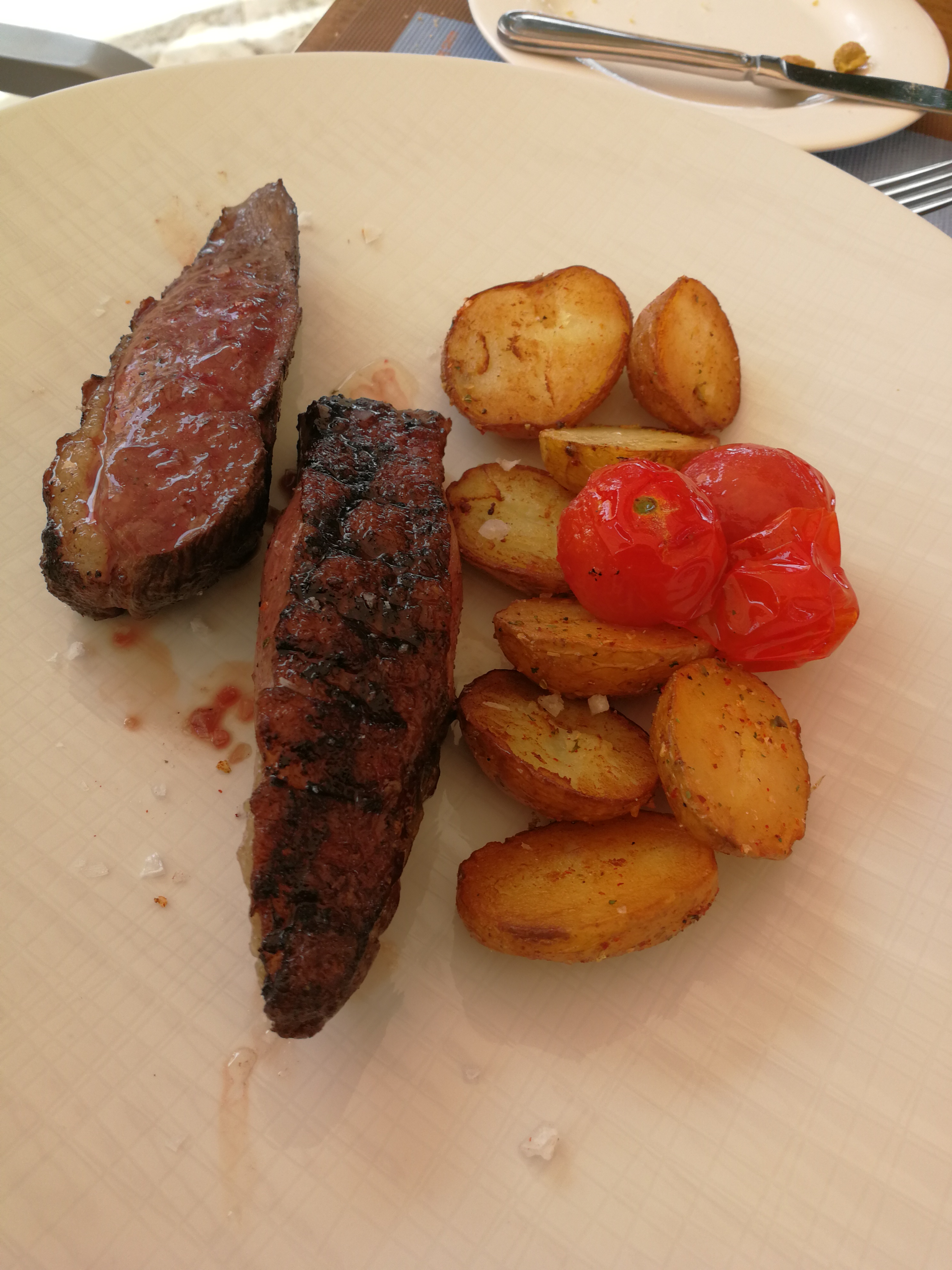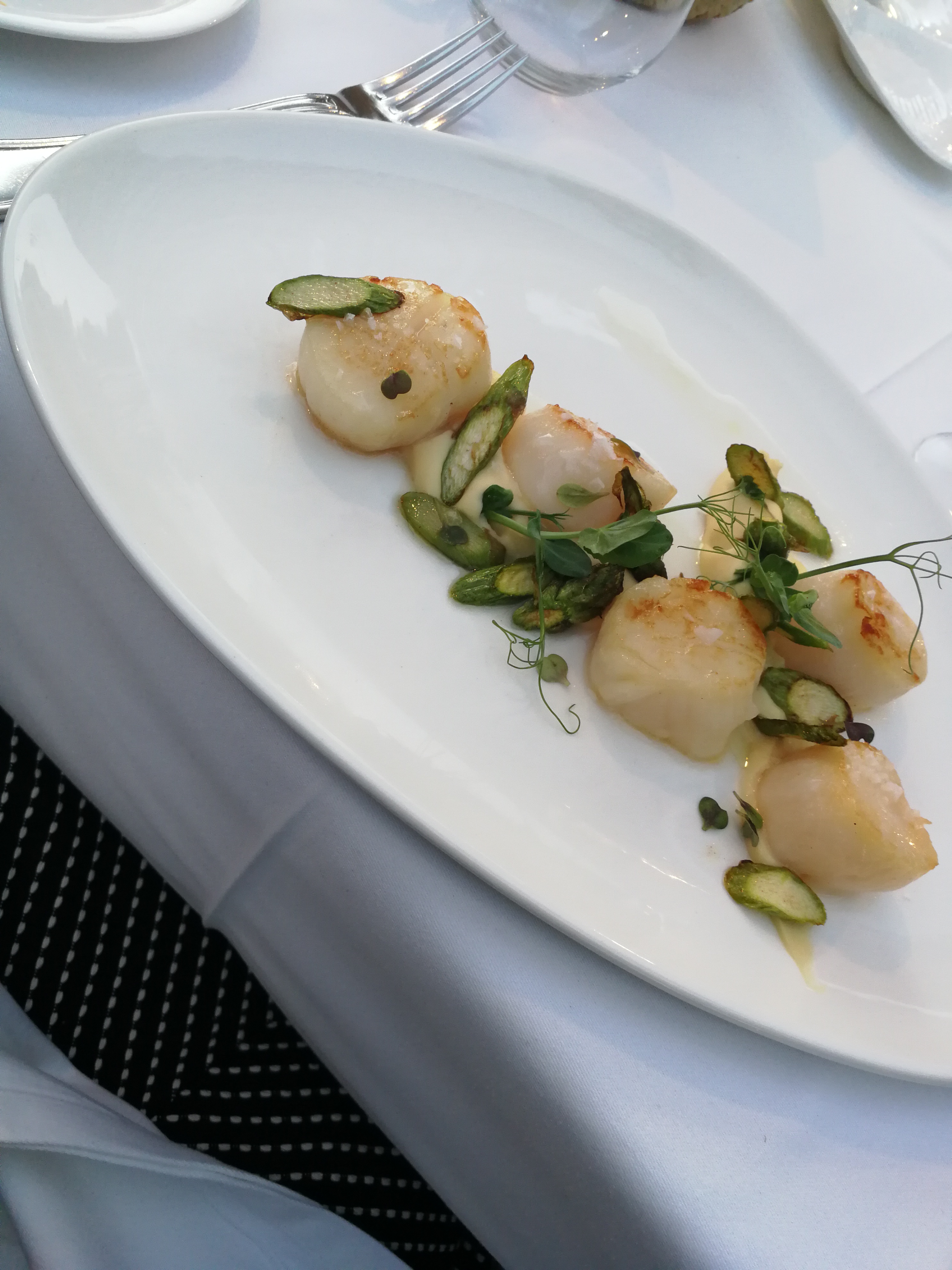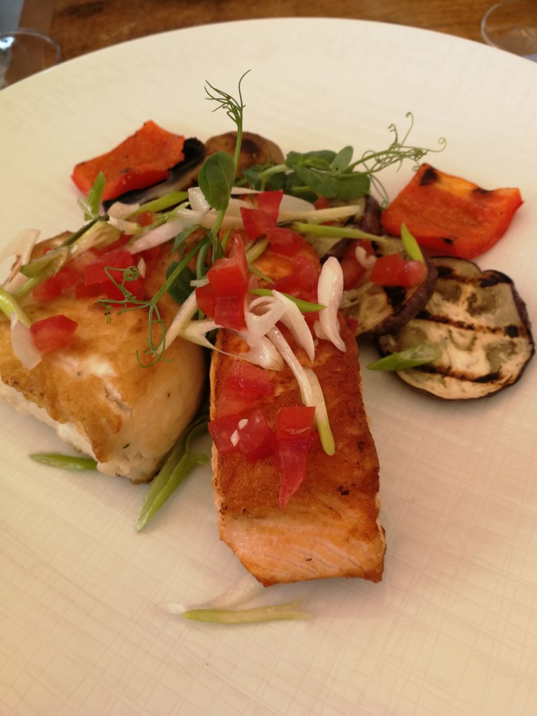 We’ve been back already a few times this year, when lunch costs 35€ for three courses. We had a choice of two starters and three mains (one of which was veggie); there was no choice for dessert, but cherries and lemon sorbet worked for me. These were our choices, and for a five-star hotel restaurant, I think the value for the cost was fair.