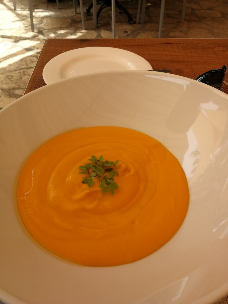 Our next visit was for lunch, by which time it was warm enough to be eating on the spacious, open terrace with its beautiful, bucolic views over Sa Vall – the fertile valley that’s the source of some of the fruit and vegetables sold in the local town. The setting is gorgeous – particularly as the sun sets – and it’s hard to believe you’re so close to busy Manacor.