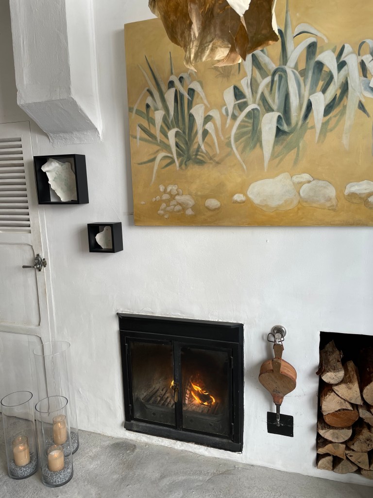 Senseless Art Gallery and Café was smaller than I had imagined, but small can be beautiful (and it is here). Immediately we spotted the welcome log fire – even on a sunny winter’s day in Mallorca, it can feel chilly. Owner Julia Fischer-Bernard greeted us warmly and offered us the last available table in this cosy space. We hadn’t booked but shall do so in future, having realised how fortunate we were to get a table without a reservation.