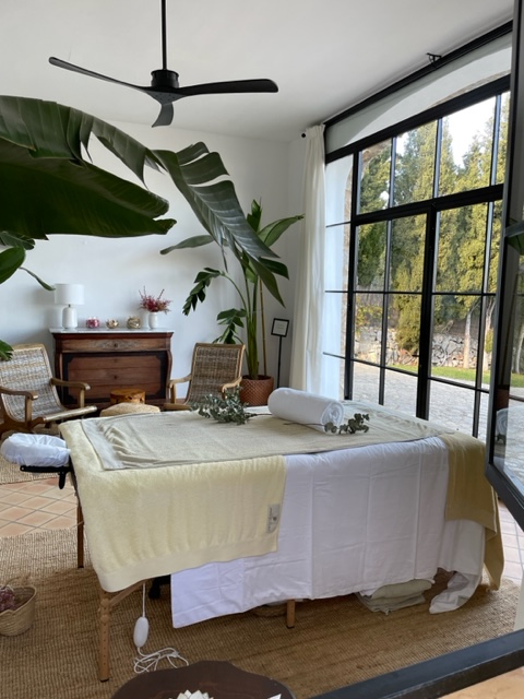 Before going to our suite, adjacent to the 200-year-old chapel and the surviving medieval walls, we had a look at the new wellbeing facilities. The former sauna, which was close to the outdoor pool, has been converted into a spacious treatment room where therapist Joana offers facials, massages, and body rituals.