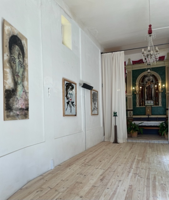 The 200-year-old chapel is now a space for art, although elements identifying its original purpose are still in place.