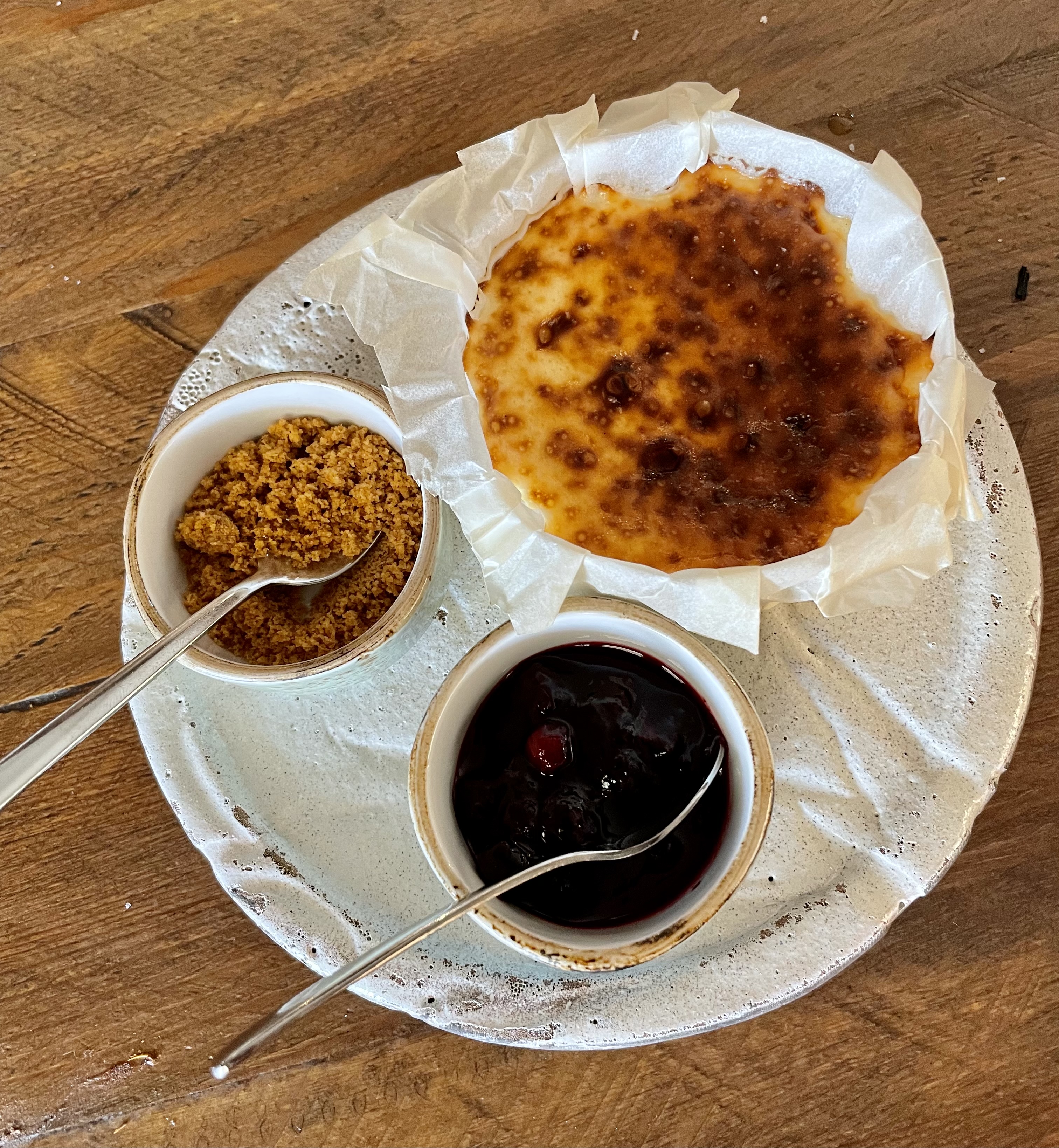 Having eaten well, we weren’t going to have dessert. Until our server, Alejandra, told us that all the desserts are made in-house … and the Josper-baked cheesecake (8,50€) is particularly good. It was like dangling a carrot in front of a donkey, so we shared a cheesecake. Had I known how deliciously creamy and rich it was going to be, I’d have had a portion to myself.