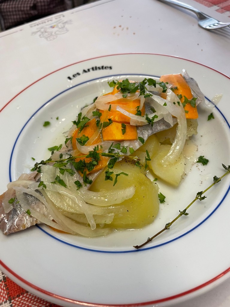 The winter menu has starters including snails from Burgundy, sausage from Lyon, and the ever-popular onion soup with grilled Emmental and French bread. Main courses include boeuf bourguignon (made over three days and from three cuts of beef) served in a Le Creuset pot (18,90€), confit of duck (19,50€), hanger steak (‘onglet de boeuf’ (18,70€), and pike quenelle with a sauce of Norwegian lobster and shrimp bisque, and pilaf rice (17,30€). A few vegetarian dishes are available – including a vegetarian main course.