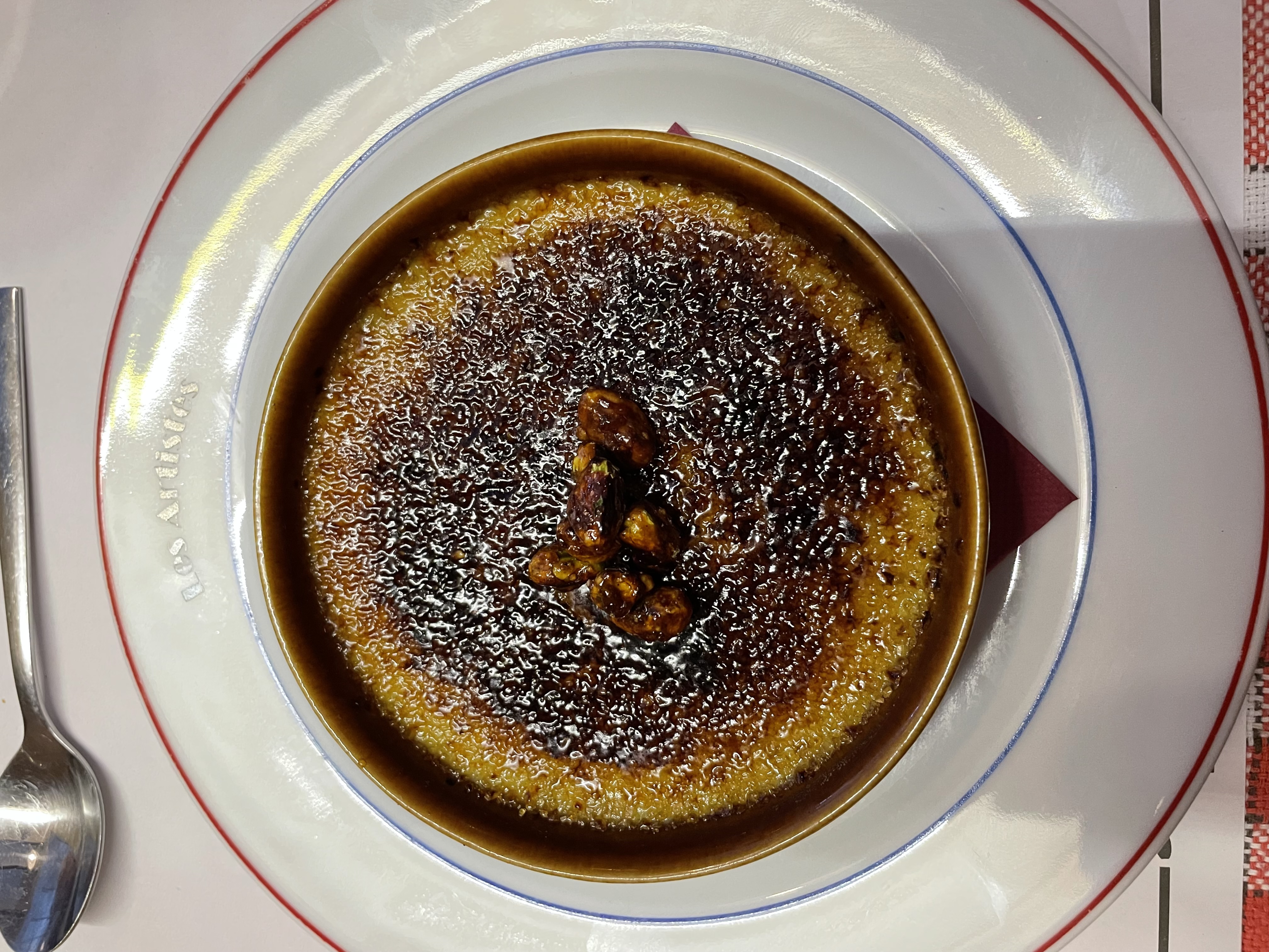 Our desserts were tarte tatin and crème brûlée with pistachios (7,50€).