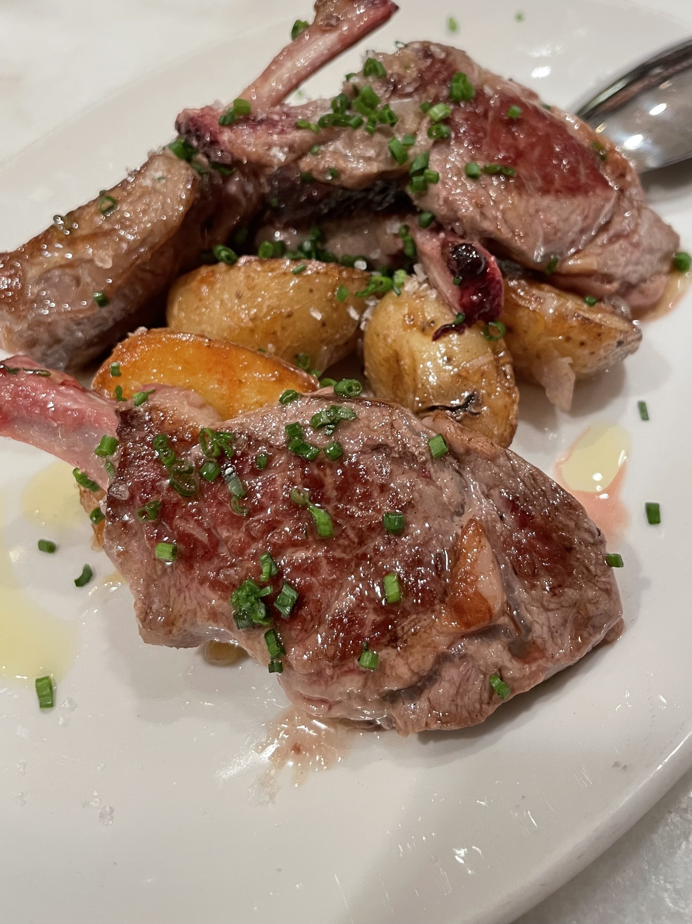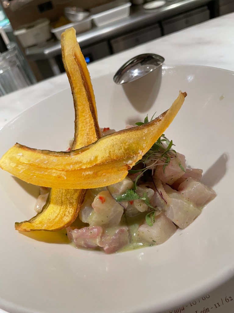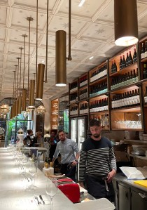 The menu is printed on paper placemats on the countertop and a separate list shows the day’s specials. The Mediterranean cuisine is made from carefully sourced produce. This is a place to share dishes – the more the merrier (go hungry). On our last visit, we ate pimientos de Padrón, salt cod fritters (yum!), ceviche, queen scallops – probably my favourite dish there – and succulent, meaty lamb chops from Burgos.