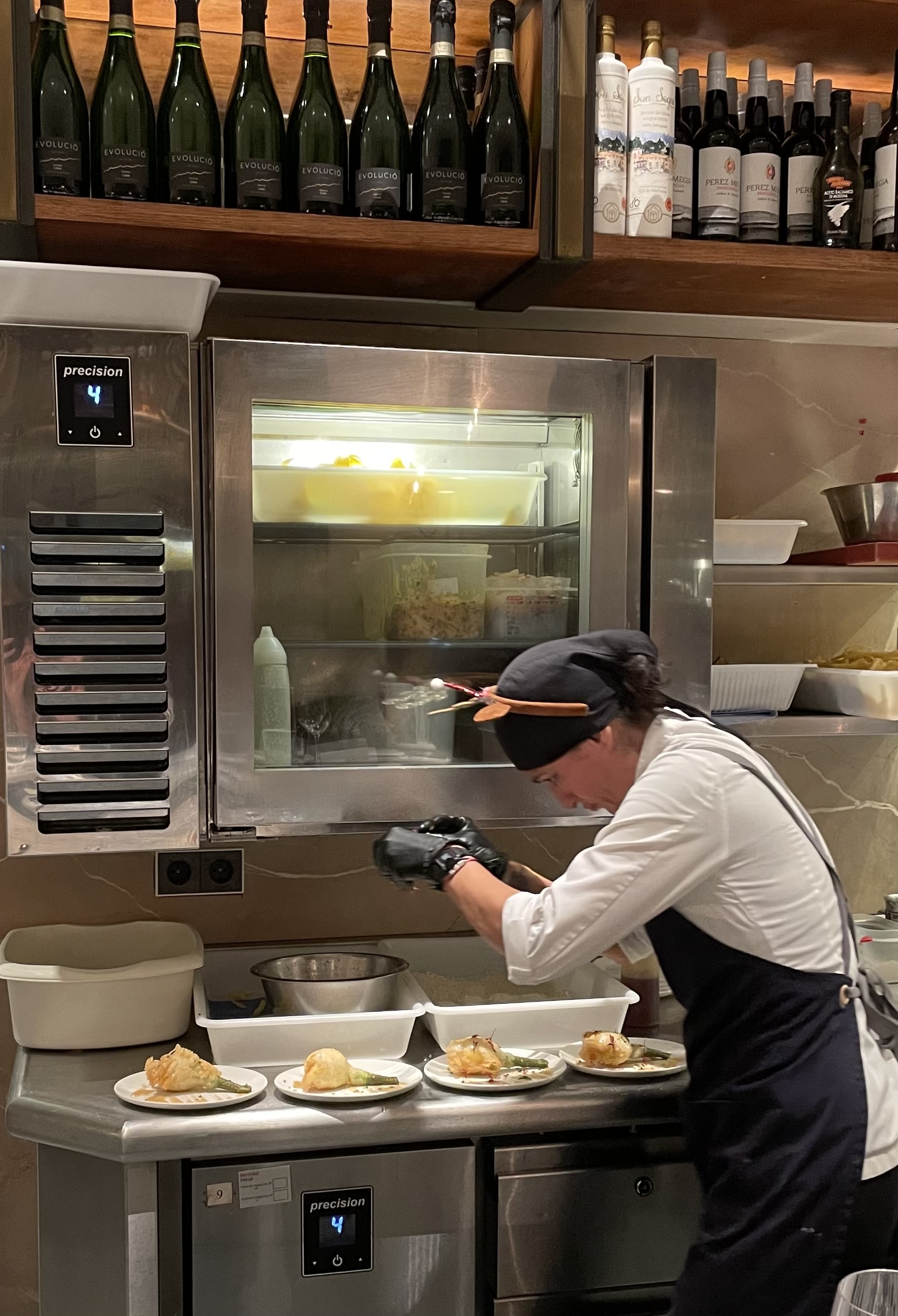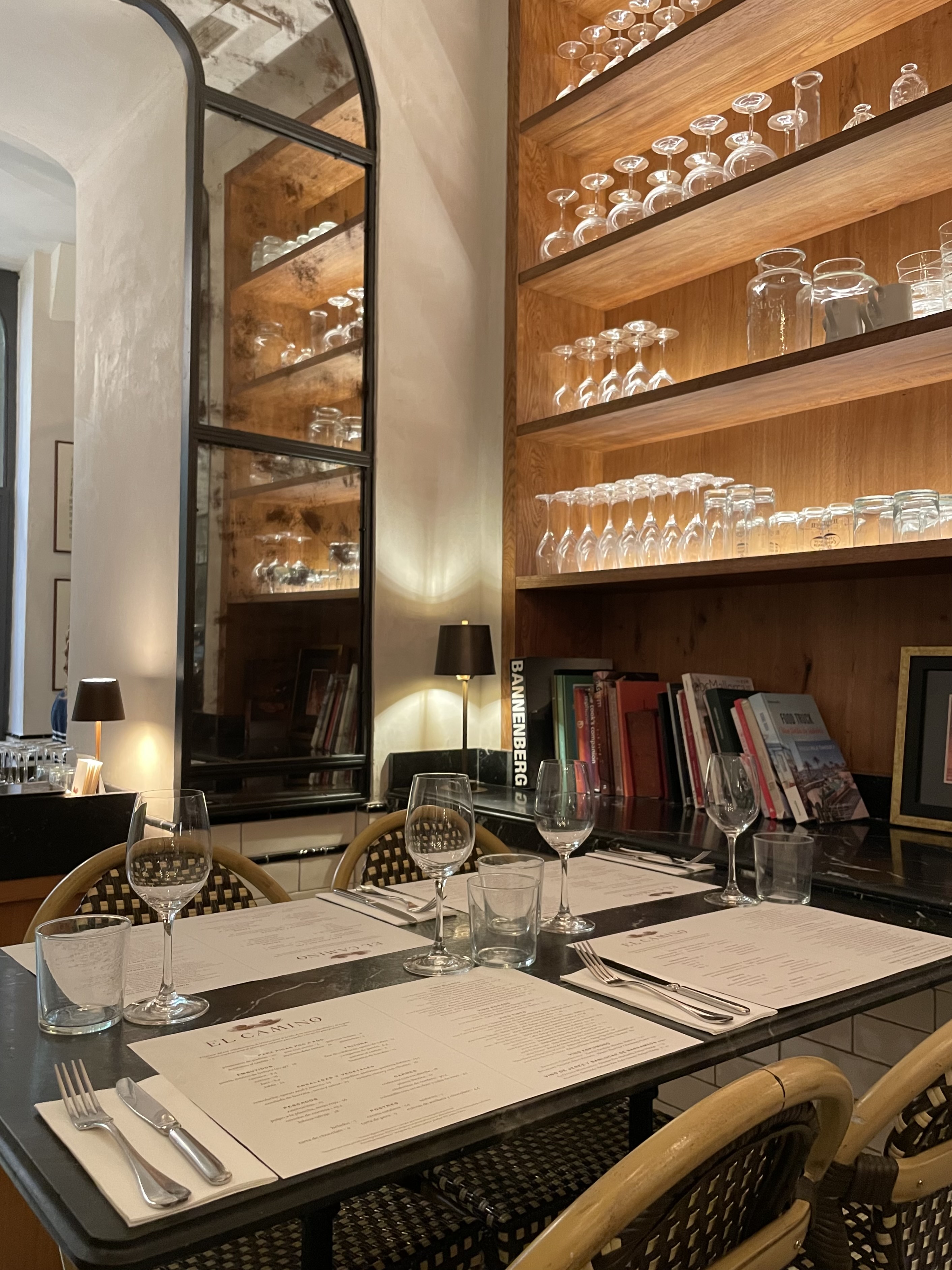 Wines are Spanish and some special ones from Mallorca. There’s one for all tastes and budgets here, including Vega Sicilia at the top end of the price range. Only the top-end wines are not available by the glass. I enjoyed the freshness of the Friki Verdejo and Mallorcan winery Oliver Moragues’s delicious red, El Galgo.