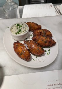 El Camino’s visual appeal is obvious. The attractive, elegant décor is the work of interior designer Elsa Olivera of Elsa O Studio. The warm lighting and use of mirrors make clever use of the narrow space. I like the thoughtful touch of adding hooks under the counter so you can hang a bag or your jacket while you’re seated.
