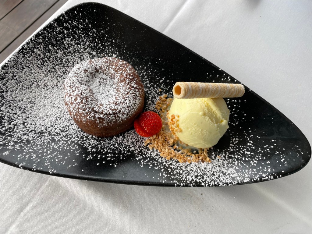 Two desserts are noteworthy here: dark chocolate coulant and apple tart with vanilla ice cream – each of these two takes 20 minutes to cook, allowing you more time to enjoy the view.