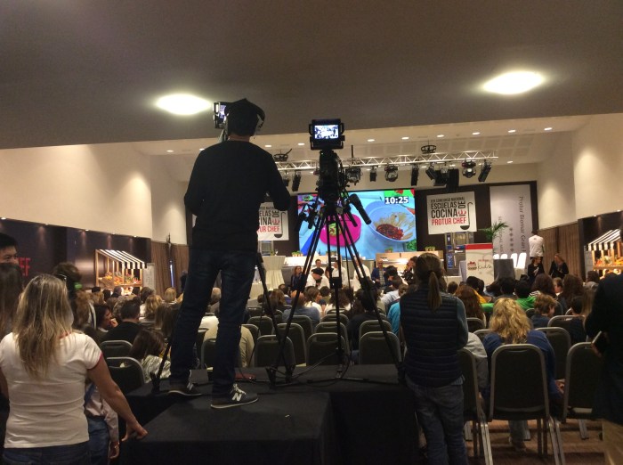 My stint was just for the Saturday morning, as other food writers, bloggers, and broadcasters also took turns on the panel for different stages of the cooking contest. When I entered the auditorium of the Protur Biomar Gran Hotel & Spa in Sa Coma I was instantly impressed by the professional set-up awaiting the young chefs who would be cooking on stage later.