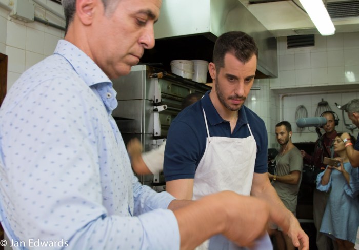 The 20 student chefs each had to create a dish costing no more than seven euros and based on Mallorca’s famous black pork. They’d come from 10 different cooking schools all over Spain to take part. We were able to observe the young chefs on stage with the aid of video cameras that projected live images onto what I was told was the largest screen on Mallorca. Then we were able to see and taste the finished dishes and give our comments.