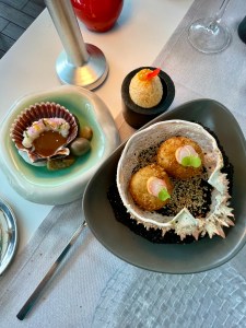 Desserts were a semifreddo of chocolate and caramel with an orange salad to counter the richness (11,50€) and crème brûlée of passion fruit with tonka bean ice cream and strawberries (11,50€). I’d recommend either of these.